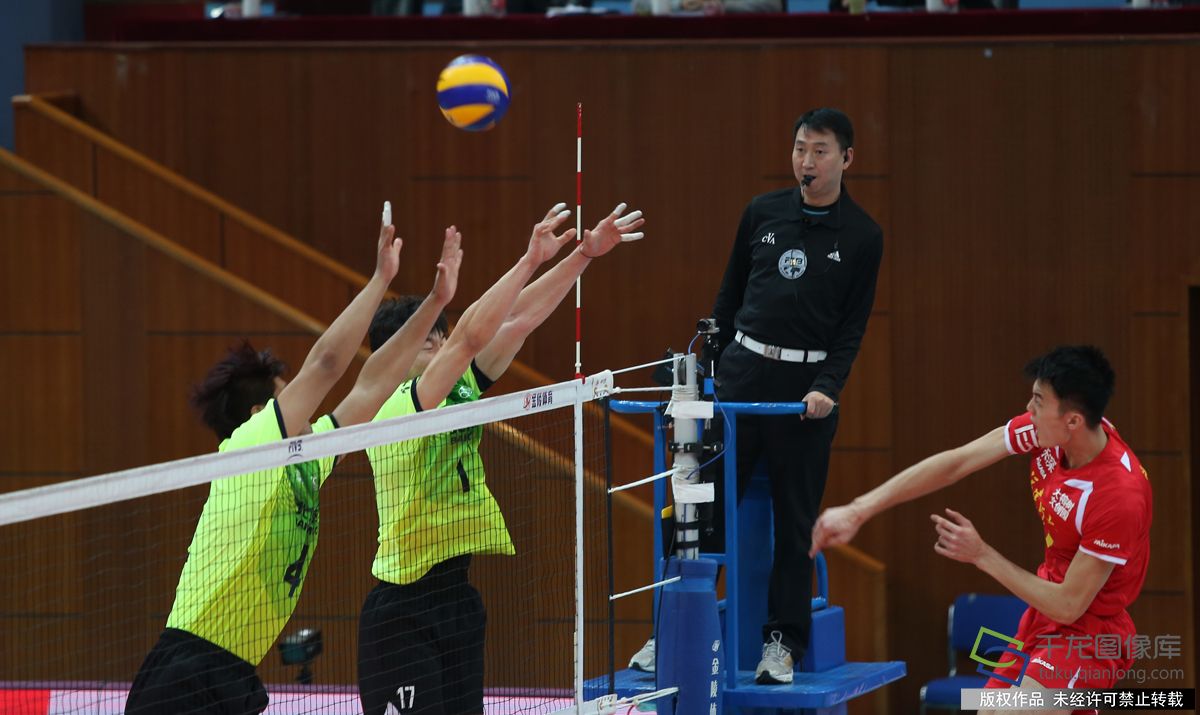 11月20日,中国男子排球联赛小组赛第五轮北京汽车男排主场3比0战胜福建师范大学男排。图为本场比赛精彩瞬间。千龙网记者 戚连民摄