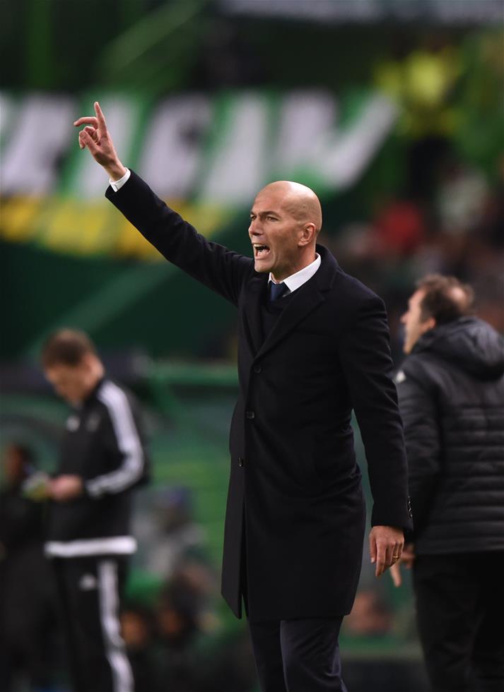 11月22日,皇马队主教练齐达内在场边指挥。当日,在2016-2017赛季欧洲足球冠军联赛F组比赛中,西甲皇家马德里队客场以2比1战胜葡超里斯本竞技队。 新华社记者张立云摄
