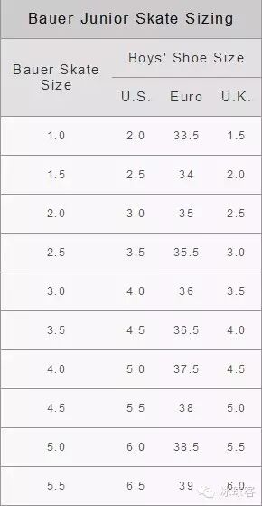 3.几个著名冰球运动品牌的鞋码尺寸比较,建议初学者选择购买。