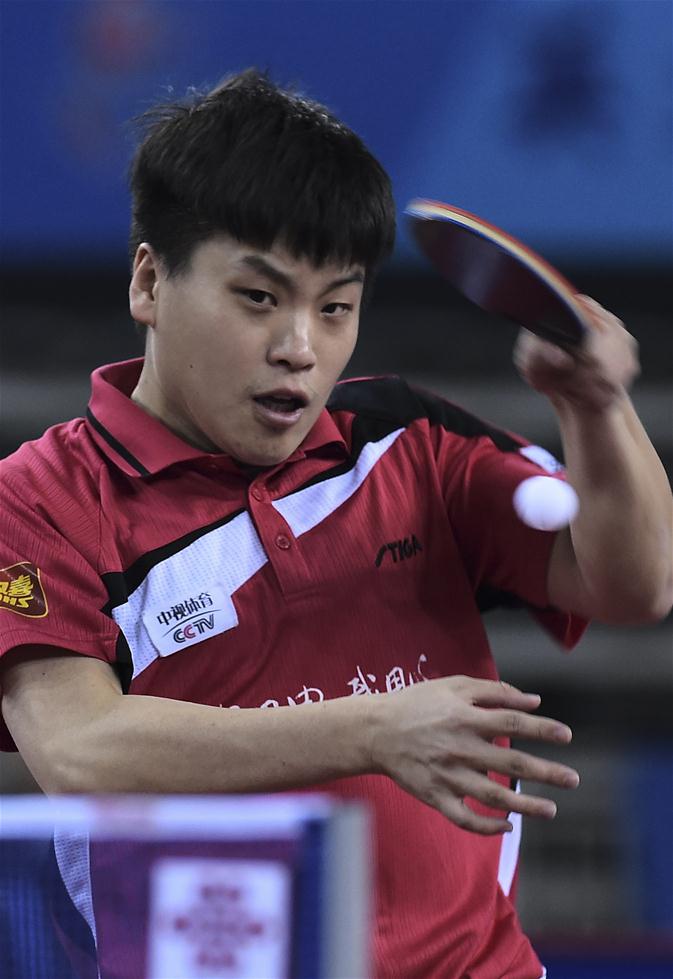 12月24日,山东鲁能队选手郝帅在比赛中回球。他在单打比赛中以3比2战胜深圳宝安明金海队选手任浩。当日,在2016中国乒乓球俱乐部超级联赛男子团体第一阶段第18轮比赛中,山东鲁能队主场以3比0战胜深圳宝安明金海队。新华社记者郭绪雷摄