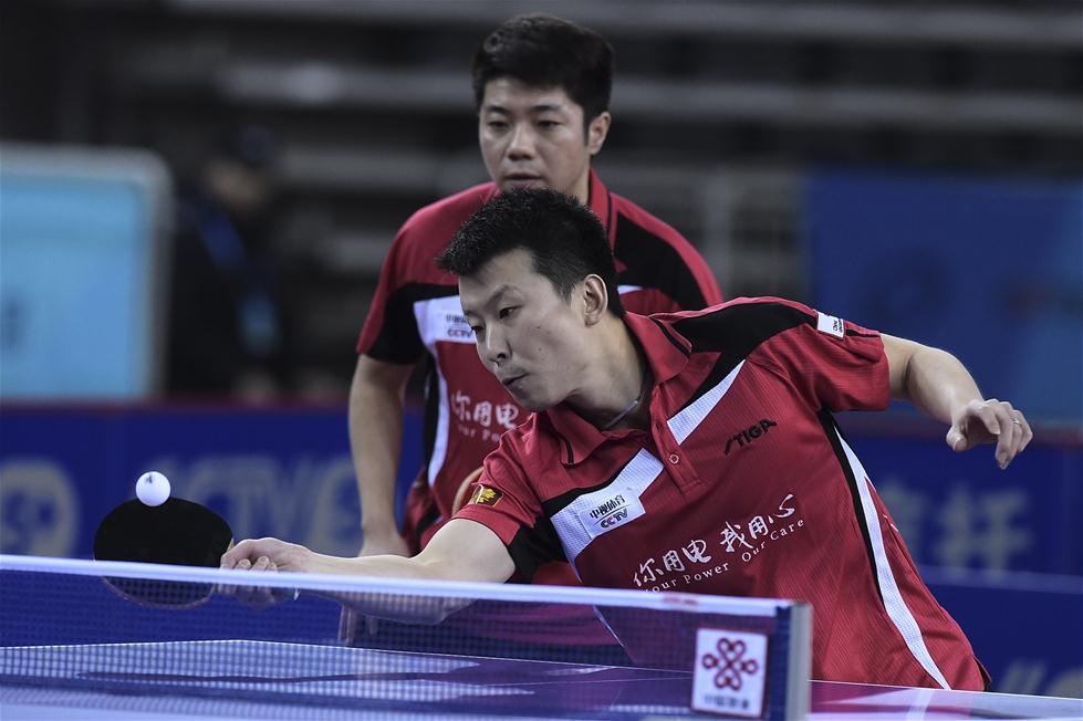 12月24日,山东鲁能队组合张超(右)/林晨在比赛中。他们在双打比赛中以2比0战胜深圳宝安明金海队组合崔庆磊/刘吉康。当日,在2016中国乒乓球俱乐部超级联赛男子团体第一阶段第18轮比赛中,山东鲁能队主场以3比0战胜深圳宝安明金海队。新华社记者郭绪雷摄