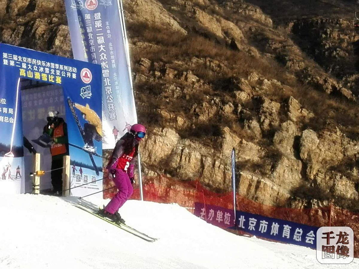 12月28日,第二届大众冰雪北京公开赛高山滑雪比赛在延庆区石京龙滑雪场举行。图为参赛选手在比赛中。千龙网发 屠德荣 徐雅芬