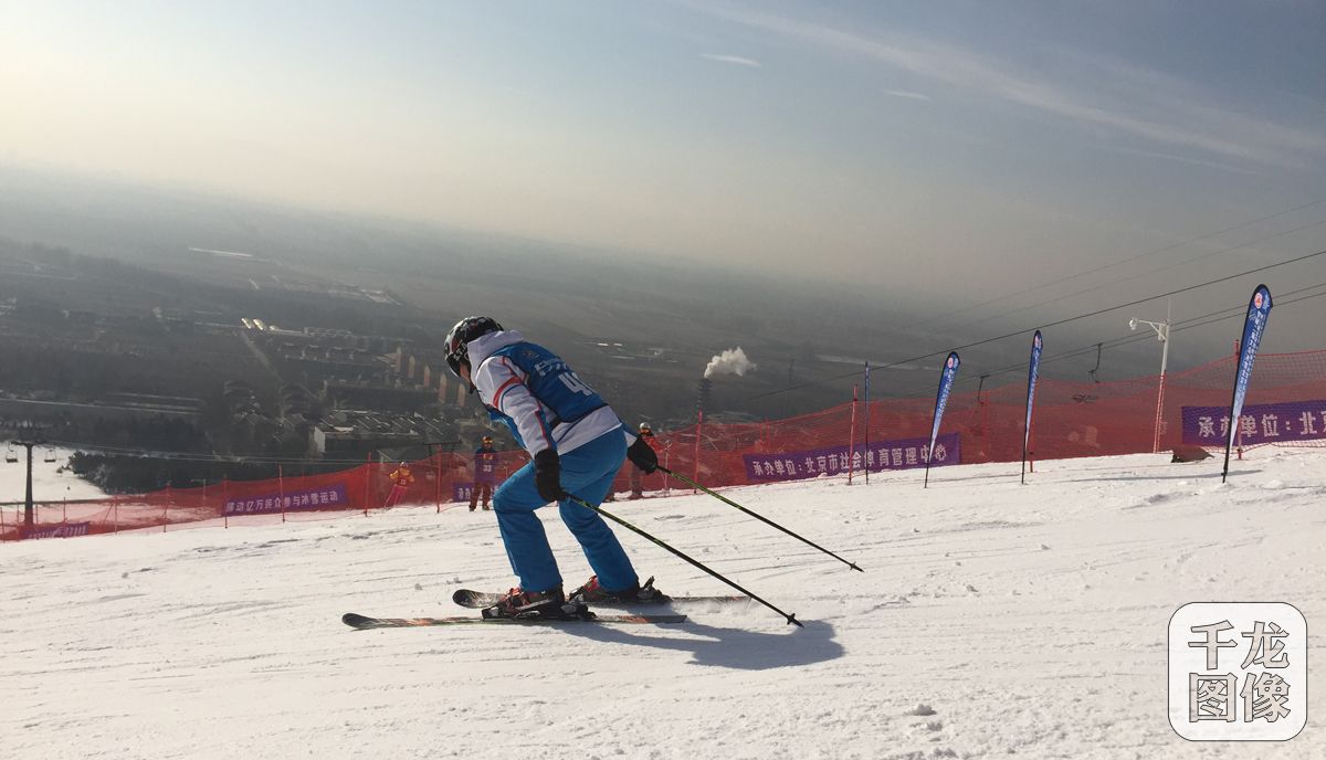 12月28日,第二届大众冰雪北京公开赛高山滑雪比赛在延庆区石京龙滑雪场举行。图为参赛选手在比赛中。千龙网发 屠德荣 徐雅芬