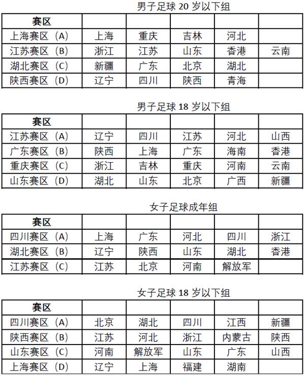 会上还举行了本届全运会足球预赛分组抽签仪式,最终抽签结果如下: