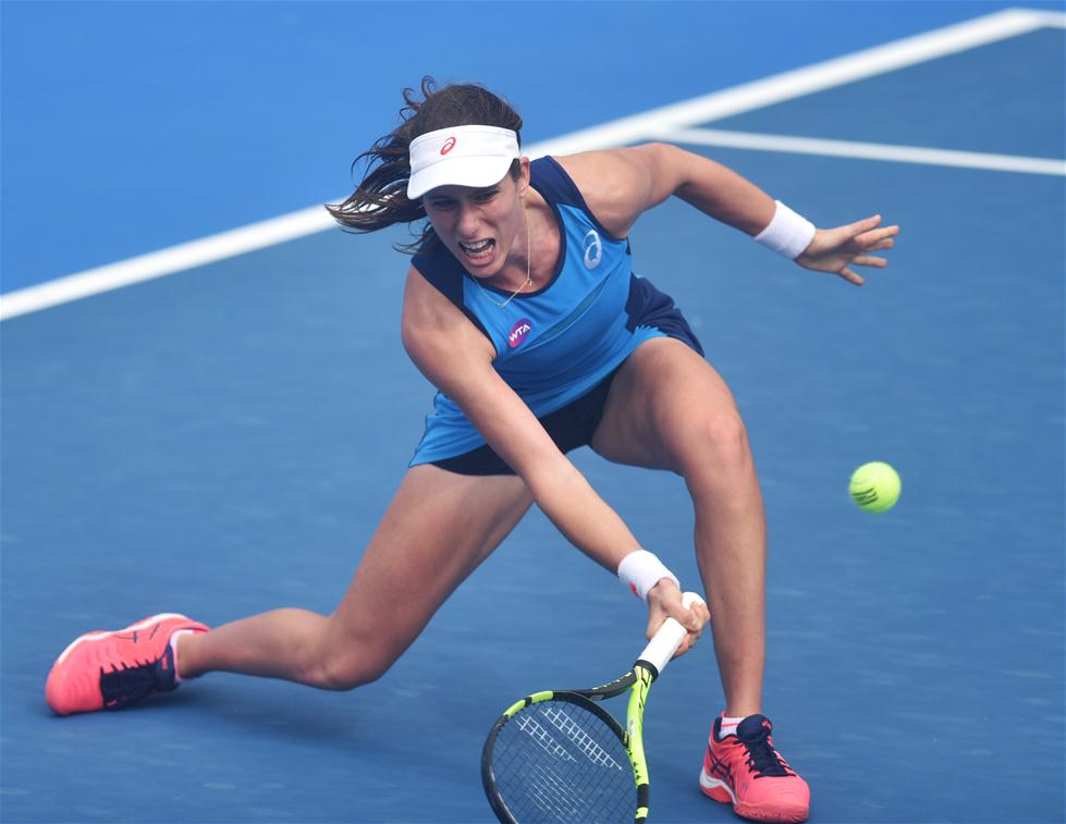1月5日,孔塔在比赛中回球。当日,在WTA深圳网球公开赛四分之一决赛中,英国选手约翰娜·孔塔以2比1战胜捷克选手克里斯蒂娜·普利斯科娃,晋级半决赛。新华社记者王东震摄