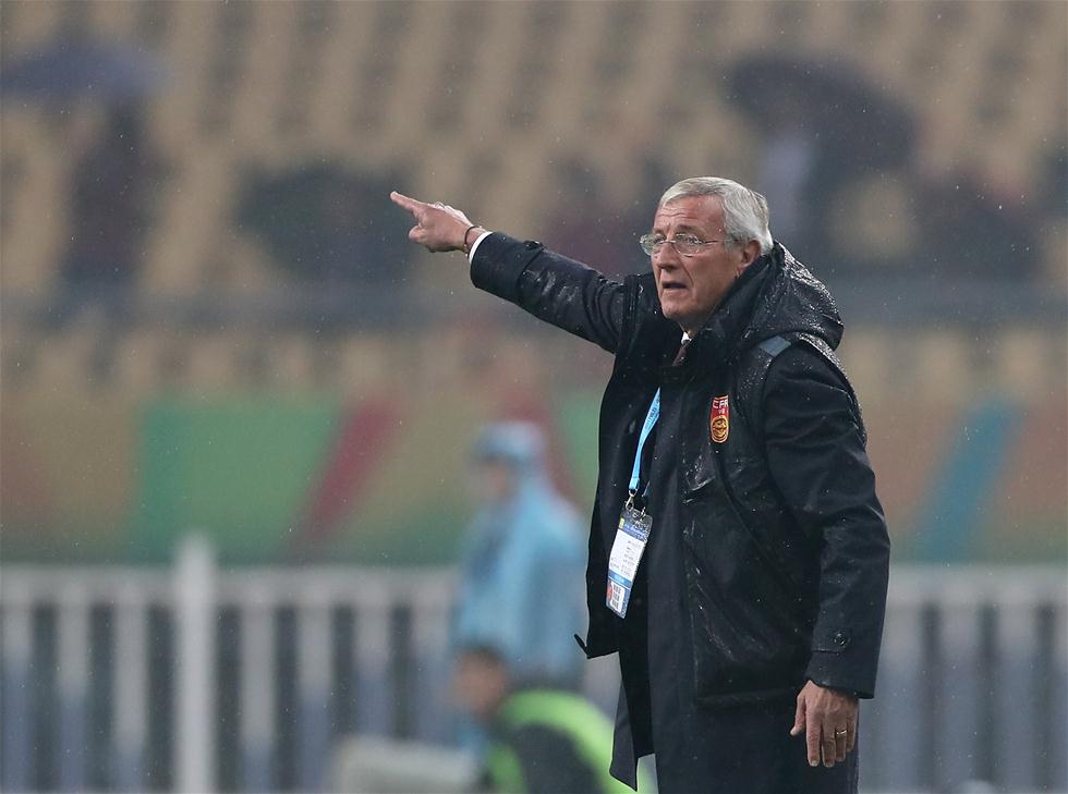 1月10日,中国队主教练里皮在场边指挥。当日,在广西体育中心举行的2017中国杯国际足球锦标赛中,中国队0-2不敌冰岛队。 新华社记者曹灿摄