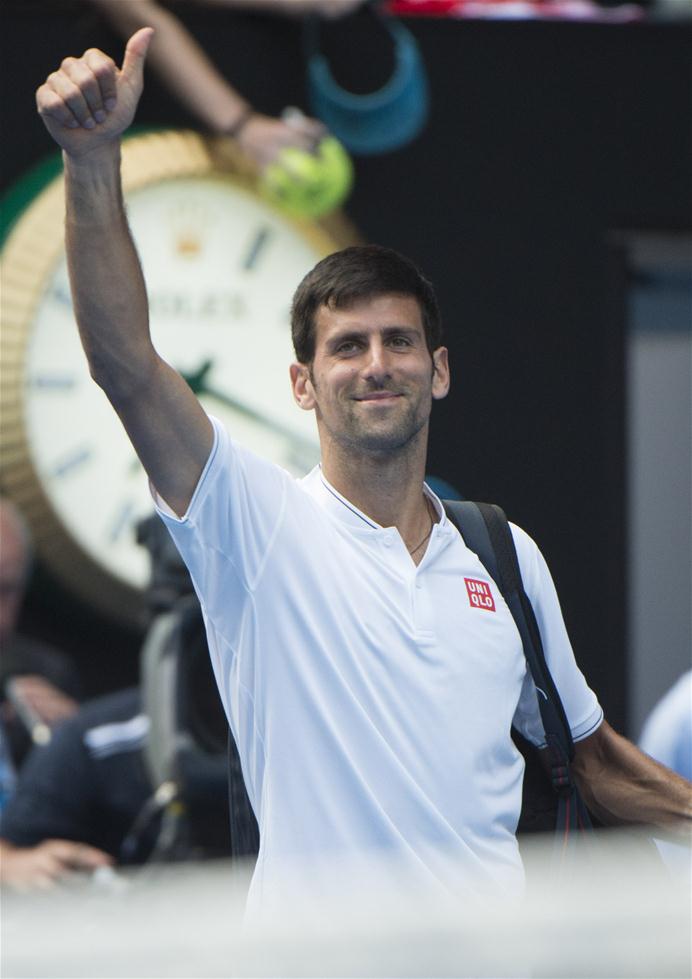 1月19日,塞尔维亚选手焦科维奇在比赛后向观众致意。当日,在澳大利亚网球公开赛男单第二轮比赛中,塞尔维亚选手焦科维奇以2比3不敌乌兹别克斯坦选手伊斯托明,无缘下一轮。 新华社记者吕小炜摄
