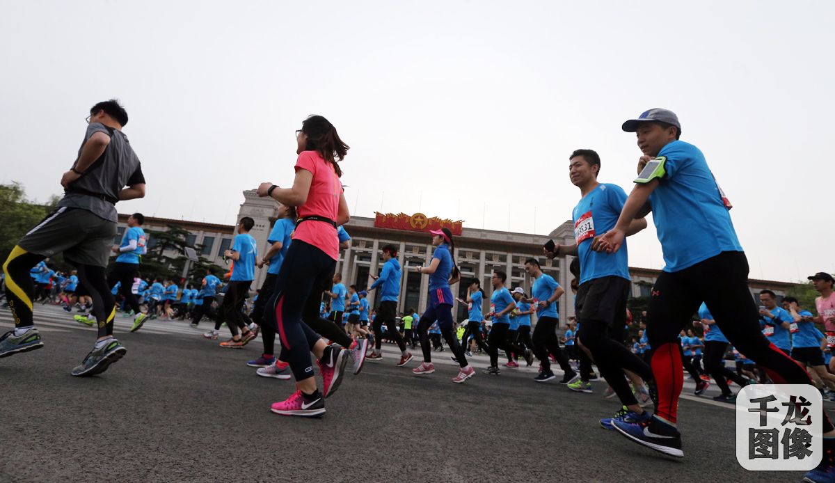 4月16日,2017北京国际长跑节暨北京半程马拉松在天安门广场鸣枪起跑。图为北京半程马拉松鸣枪两万余名跑者欢乐开跑。千龙网记者 戚连民摄