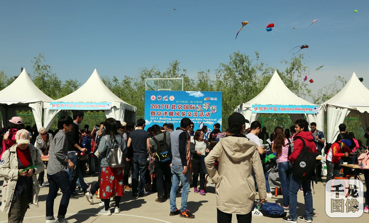 4月20日,2017年北京国际风筝节暨京津冀风筝交流活动在京举行。图为制作区体验制作风筝。千龙网记者 戚连民摄