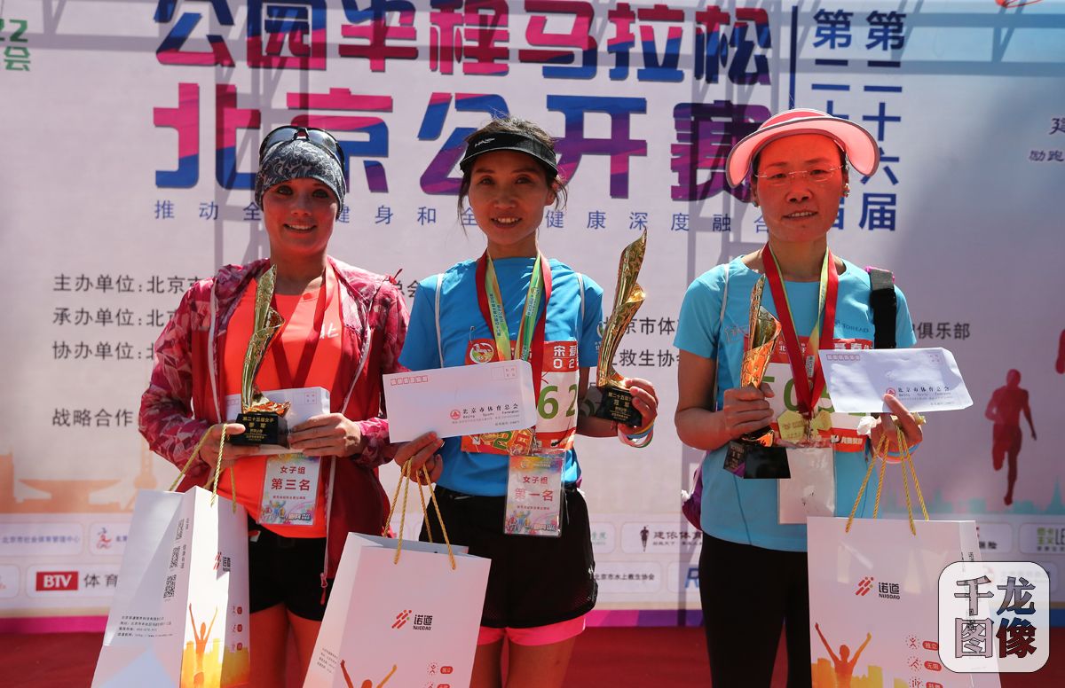 5月6日,跑向2022冬奥会·第25届、第26届公园半程马拉松北京公开赛在北京朝阳公园成功举办。图为女子前三名合影。千龙网记者 戚连民摄