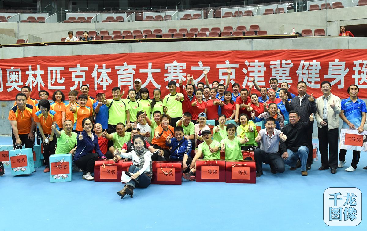 5月6日,民间奥林匹克体育大赛之京津冀健身毽大赛在奥林匹克森林公园钻石球场举行。图为获奖选手大合影。千龙网发 夏波光摄