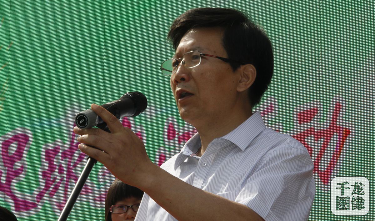 6月10日,2017广外地区“梦想杯”青少年校园足球交流活动在椿树馆小学举行,活动旨在以足球为载体,培养学生的团队合作精神,锻炼他们坚韧不拔的意志品质。图为北京宣武红旗业余大学党总支书记钱孝先致开幕词。千龙网发 主办方供图