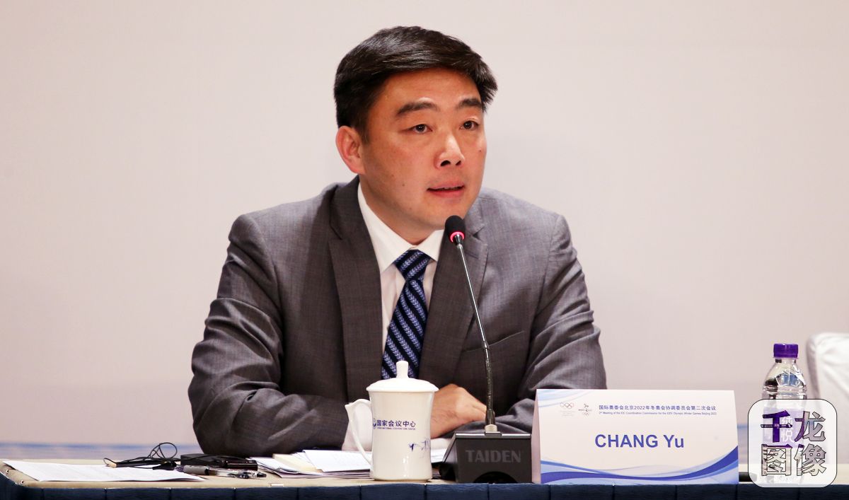 6月13日,国际奥委会北京2022年冬奥会协调委员会第二次会议新闻发布会在京召开。图为北京冬奥组委新闻宣传部部长常宇介绍北京2022年冬奥会会徽和冬残奥会会徽征集情况。千龙网记者 戚连民摄