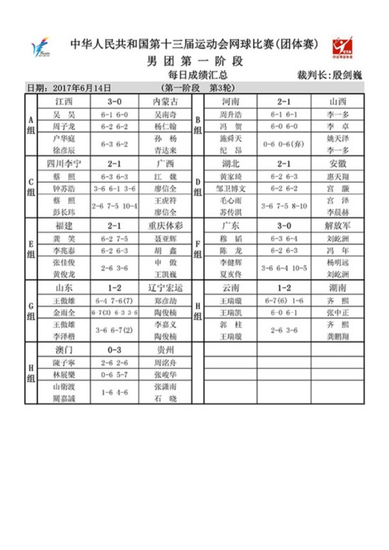 经过三天激烈的角逐,第十三届全运会团体网球项目完成小组赛争夺,男女各16支球队顺利出线。14日下午,组委会举行淘汰赛抽签仪式。15日起将进入单败淘汰赛阶段,18日将决出男女团体金牌。