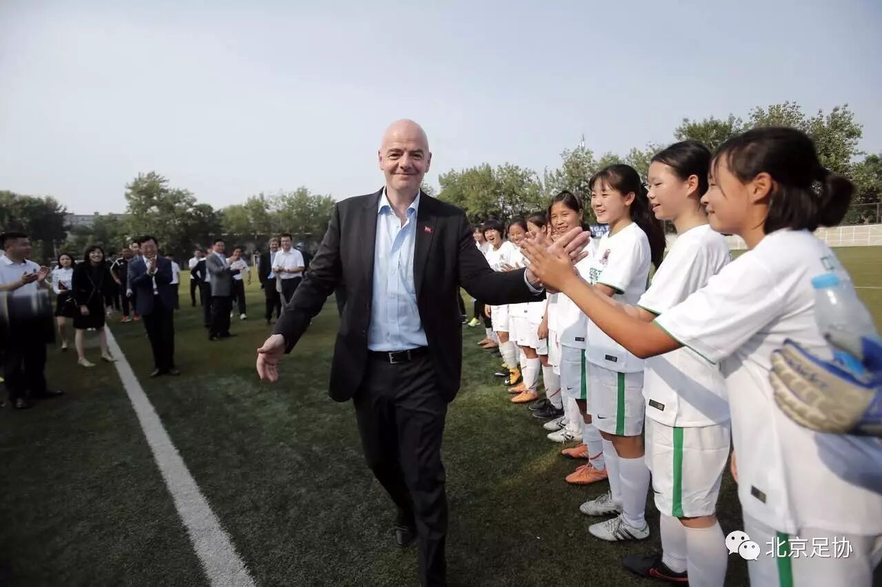 千龙网北京6月16日讯(记者 戚连民)国际足联主席詹尼·因凡蒂诺携代表团6月13日莅临北京市先农坛体育场,观看北京市青少年足球训练。中国足协常务副主席张剑、中国足协专职执委林晓华等陪同访问。中国足协执委、市体育局局长、市足协执行主席孙学才、副局长杨海滨、市足协秘书长刘军等领导迎接代表团并进行友好交流。