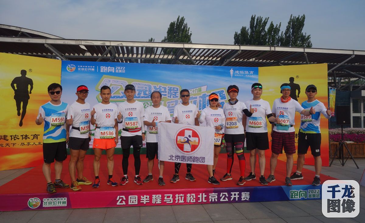 6月17,跑向2022冬奥会第二十九届公园半程马拉松北京公开赛在奥林匹克森林公园鸣笛起跑。图为跑团合影。千龙网记者 戚连民摄