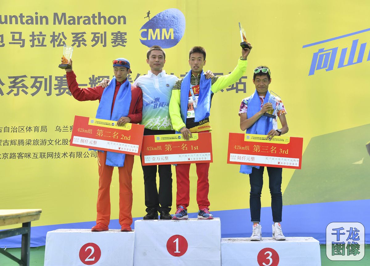 6月18日,2017中国山地马拉松系列赛辉腾锡勒草原站在乌兰察布市察哈尔右翼中旗辉腾锡勒(黄花沟)草原旅游区开赛。来自全国各地近5千名选手参与了本站赛事山地马拉松42公里组、山地马拉松21公里组和群众健身7公里组三个组别的比赛。图为赛后颁奖仪式。千龙网发 白宇摄