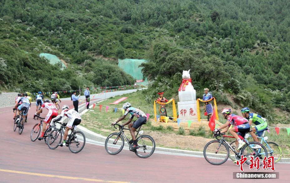 十二盘坡因有十二个拐弯而得名,整个路段路窄、弯急、坡陡,行进难度极大,成为青海互助县的一道独特的景观。值得一提的是,今年的十二盘坡,每一处拐弯点都矗立着栩栩如生的十二生肖雕像凝视着赛道,仿佛在奋力拼搏的选手们加油。图为选手们经过生肖兔的雕像。 中新网记者 翟璐 摄