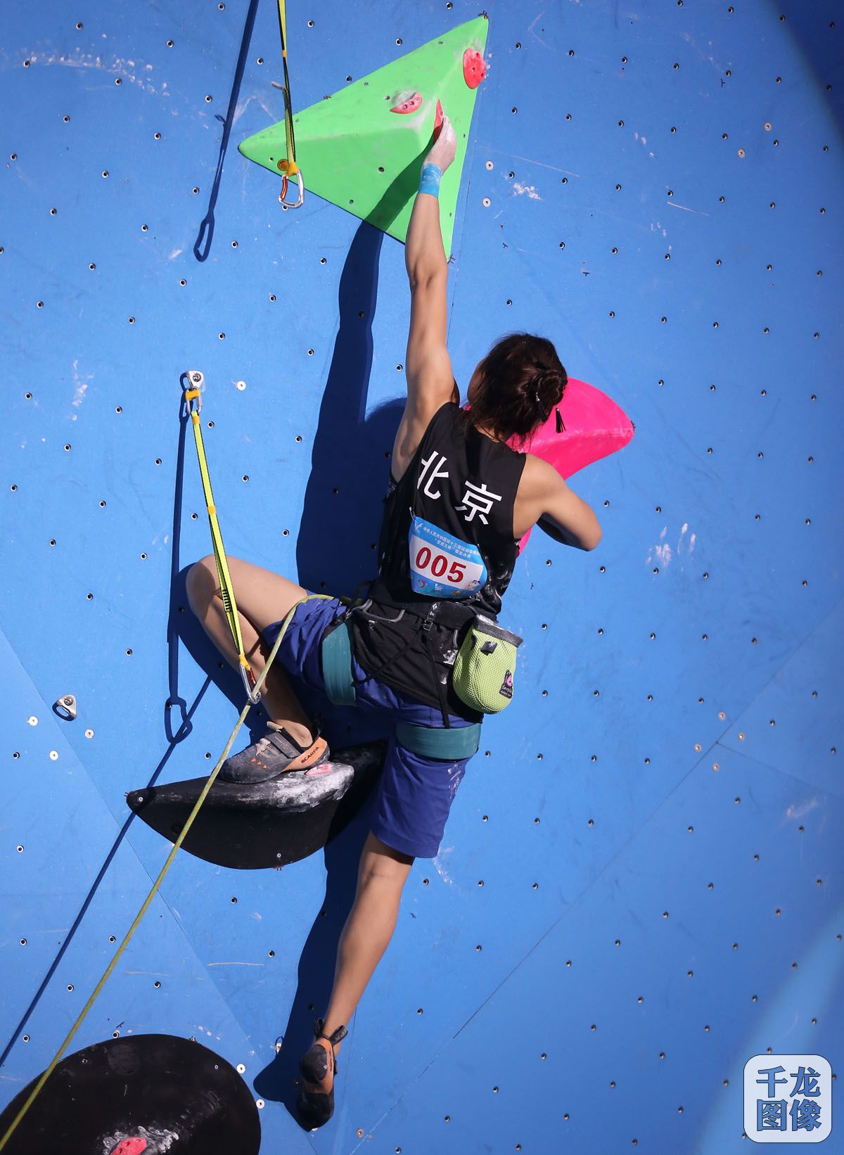 8月8日,第13届全运会群众比赛攀岩决赛在重庆市九龙坡区华岩国家攀岩示范公园进行了第二天的比赛。在男/女子难度赛决赛中,来自湖南的瞿海滨和来自广东的张悦彤获得冠军。图为北京队蒋融在比赛中。千龙网记者 戚连民摄