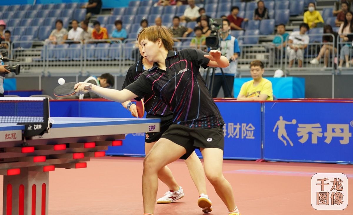 9月4日,第十三届全运会乒乓球比赛9月4日继续在武清体育中心举行,在女双比赛中,跨省组合朱雨玲/陈梦(鲁川队)3:0李佳燚/兰曦(辽宁)晋级四强。图为朱雨玲/陈梦(鲁川队)在比赛中。千龙网记者 戚连民摄