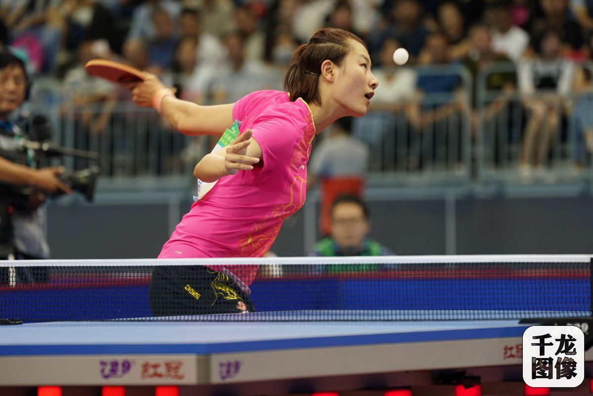 9月6日,在全运会女单半决赛中,头号种子丁宁4-3险胜朱雨玲。图为比赛精彩瞬间。千龙网记者 戚连民摄