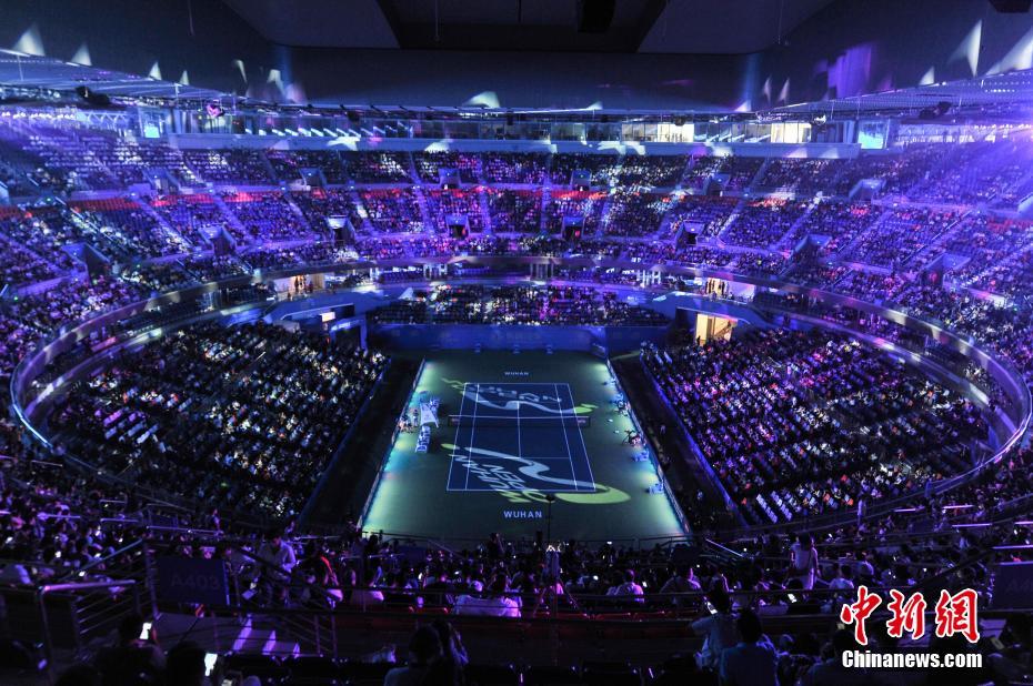 9月24日,武网开幕式现场。当日,2017年东风汽车·武汉网球公开赛全面展开正赛角逐。傍晚6点半,旋风球场举行了盛大的开幕式。中新社记者 张畅 摄