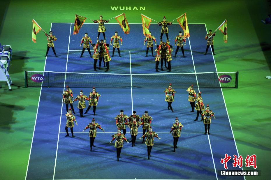 9月24日,武网开幕式现场。当日,2017年东风汽车·武汉网球公开赛全面展开正赛角逐。傍晚6点半,旋风球场举行了盛大的开幕式。中新社记者 张畅 摄