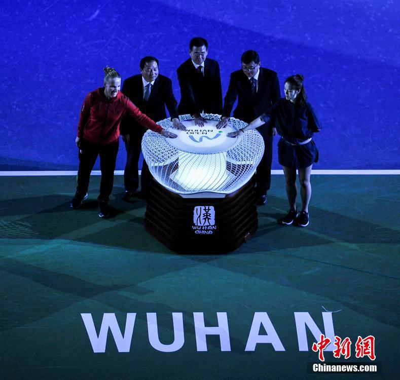 9月24日,武网开幕式现场。当日,2017年东风汽车·武汉网球公开赛全面展开正赛角逐。傍晚6点半,旋风球场举行了盛大的开幕式。中新社记者 张畅 摄