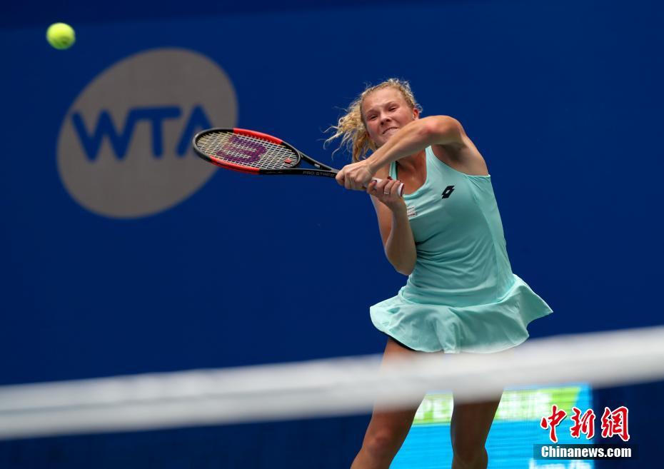 9月24日,捷克选手斯尼亚科娃在比赛中回球。当日,2017年东风汽车·武汉网球公开赛全面展开正赛角逐。傍晚6点半,旋风球场举行了盛大的开幕式。正赛首日共安排了13场单双打赛事。几位新星则表现不俗,新星巴蒂、奥运冠军普伊格均赢下开门红,成功晋级次轮。而多位名将表现低迷,爆冷出局:上午率先进行揭幕战的前世界第六、西班牙纳瓦罗两盘不敌乌克兰选手特萨伦科,13号种子梅拉德诺维奇3-6/2-6脆败于捷克新星斯尼亚科娃拍下,15号种子塞瓦斯托娃同样没能挡住俄罗斯好手马卡洛娃的冲击,两盘出局,比分为4-6/2-6。中新社记者 张畅 摄