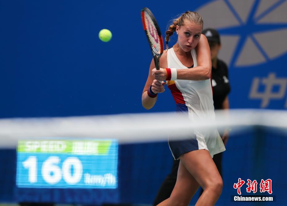 9月24日,法国选手梅拉德诺维奇在比赛中回球。当日,2017年东风汽车·武汉网球公开赛全面展开正赛角逐。中新社记者 张畅 摄
