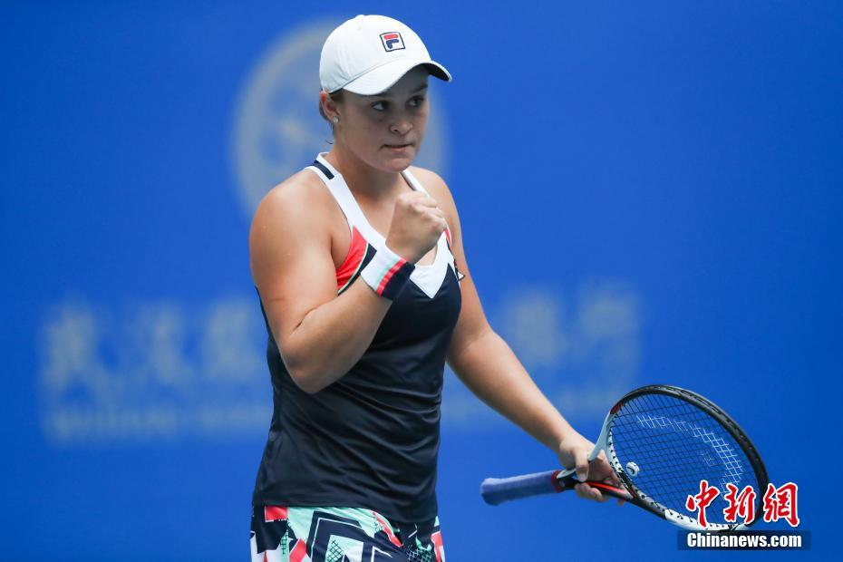9月28日,2017赛季武汉网球公开赛展开了女单1/4决赛争夺。在中心场馆的首场比赛中,澳大利亚天才少女巴蒂尽管在决胜盘中浪费连续三个赛点,最终还是以4-6、 7-6(3)、 7-6(2)力克赛会3号种子捷克的普利斯科娃,打进了自己的首个P5顶级赛的四强。图为澳大利亚巴蒂获胜后握拳庆祝。中新社记者 张畅 摄