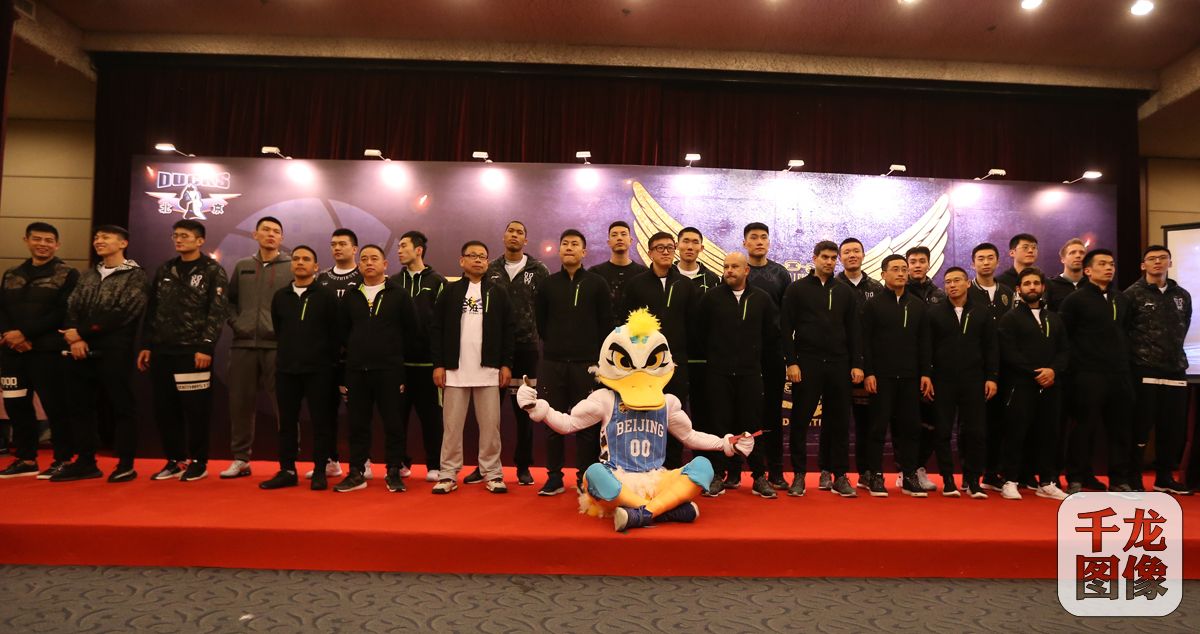 10月15日,首钢男篮2017-2018新赛季启航仪式在首钢篮球中心举行,翟晓川、方硕、吉喆等首钢男篮18名队员和教练组集体亮相。图为全体队员和教练员合影。千龙网记者 戚连民摄