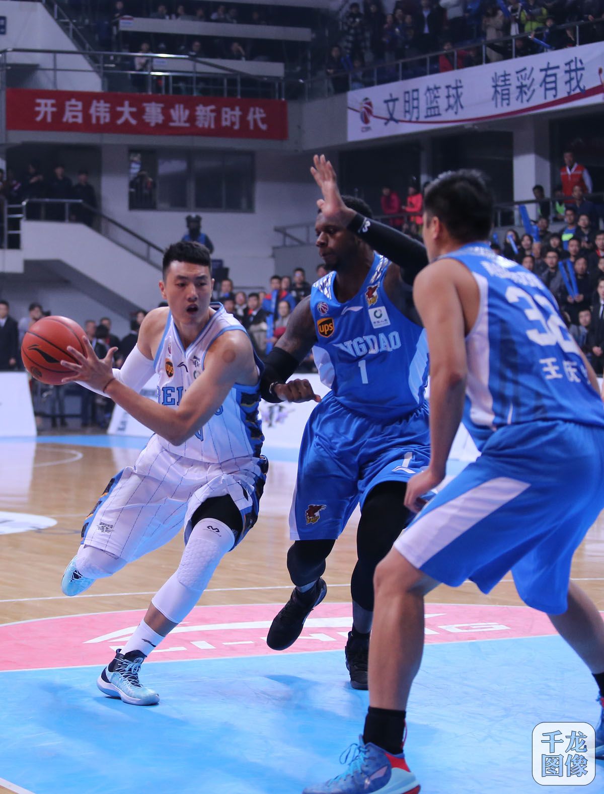 常规赛第四轮北京首钢男篮主场以111比105击败青岛国信双星队。图为本场比赛精彩瞬间。千龙网记者 戚连民摄