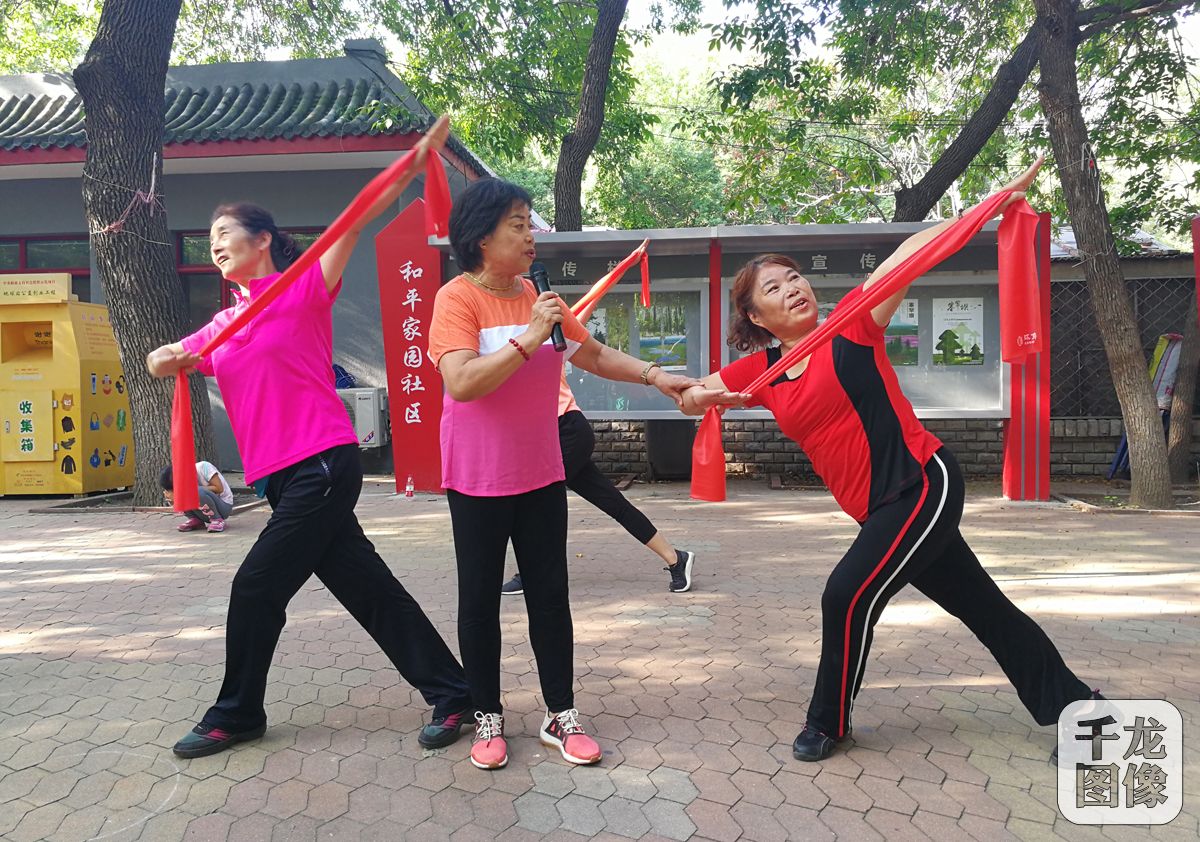 培训导师团队对群众进行的健身操舞知识培训。千龙网发 高宇摄