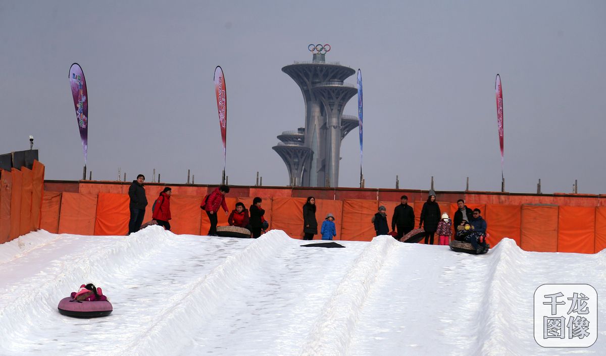 1月7日,第九届鸟巢欢乐冰雪季全面亮相。图为鸟巢北侧附场的雪圈乐园。千龙网记者 戚连民摄