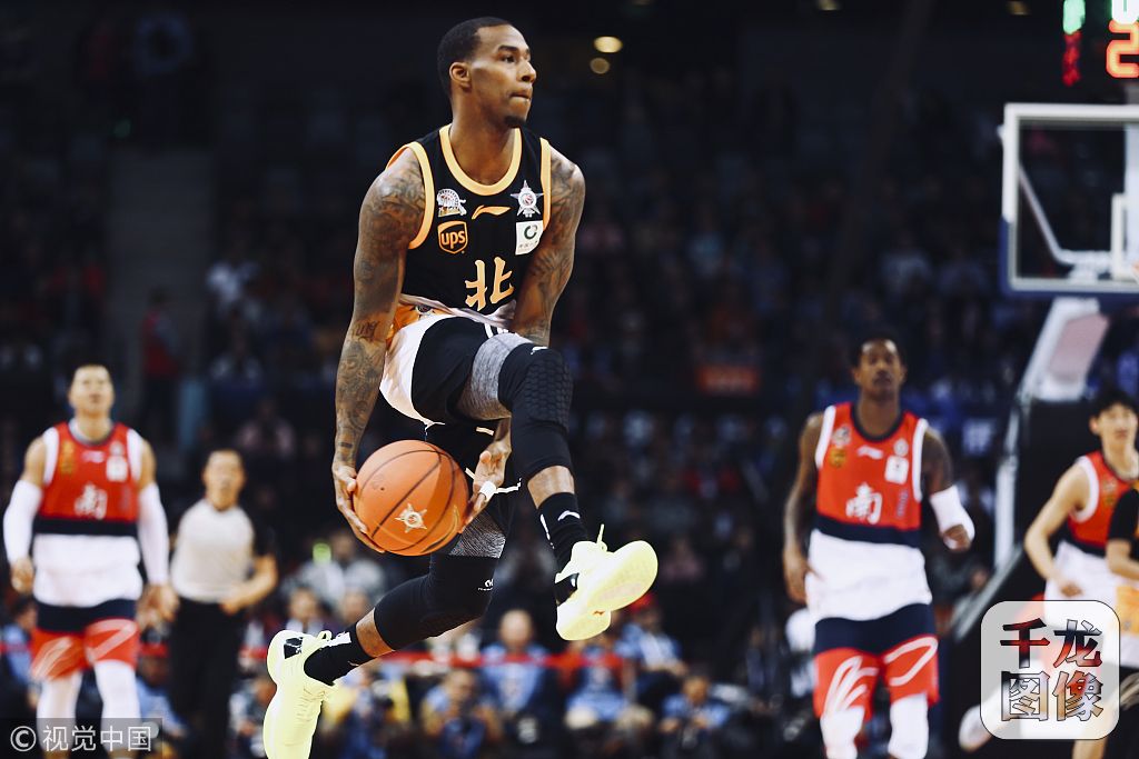 2018年1月14日,CBA全明星正赛在深圳举行,南方明星队以147-138战胜北方明星队。图为达柳斯·亚当斯胯下运球。视觉中国供图 千龙网发