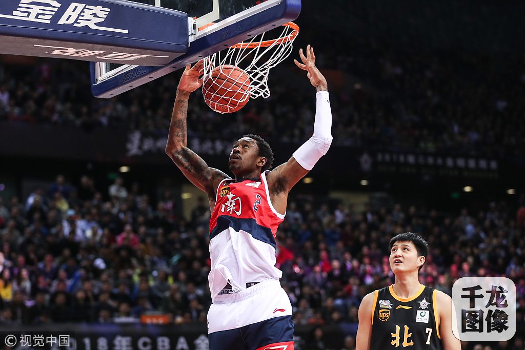 2018年1月14日,CBA全明星正赛在深圳举行,南方明星队以147-138战胜北方明星队。图为马尚·布鲁克斯扣篮。视觉中国供图 千龙网发