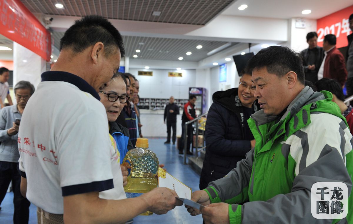 1月14日,2017年“佛雷斯”杯北京市民“快乐周末”系列赛羽毛球总决赛和保龄球总决赛暨2018年“快乐周末”系列赛(羽毛球、保龄球)启动仪式正地坛体育馆举行。图为与会嘉宾为获奖选手颁奖。千龙网发 吴晓萌摄