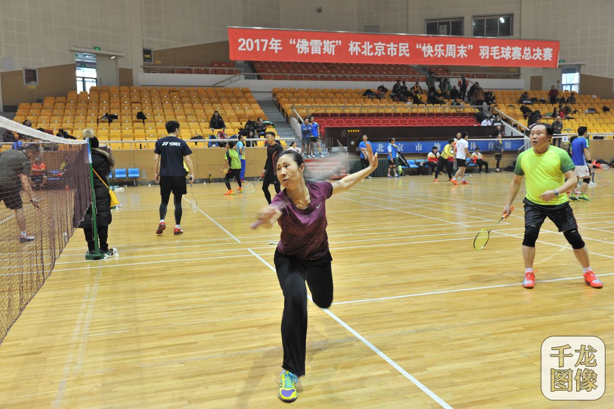 1月14日,2017年“佛雷斯”杯北京市民“快乐周末”系列赛羽毛球总决赛和保龄球总决赛暨2018年“快乐周末”系列赛(羽毛球、保龄球)启动仪式正地坛体育馆举行。图为羽毛球总决赛现场。千龙网发 吴晓萌摄