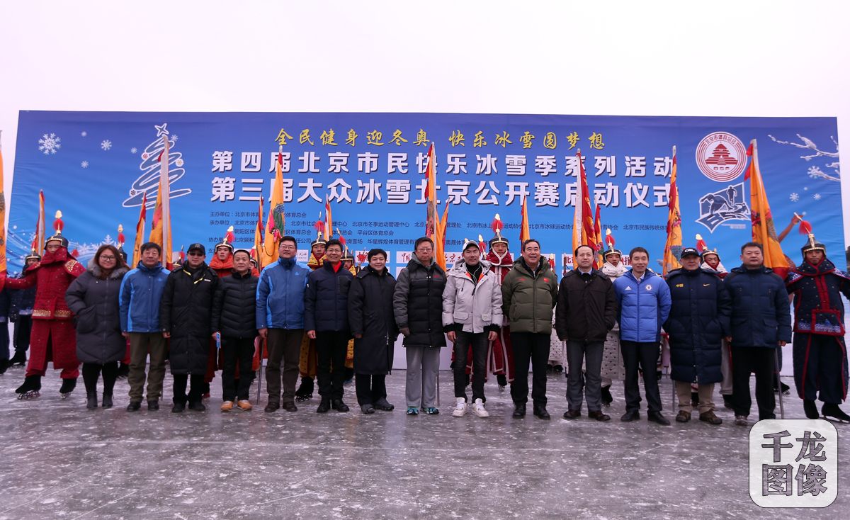 1月21日,第三届大众冰雪北京公开赛启动仪式在北京颐和园昆明湖举办,本届赛事将持续两个月,预计累计吸引上万名健身爱好者参与。图为启动仪式与会嘉宾合影。千龙网记者 戚连民摄
