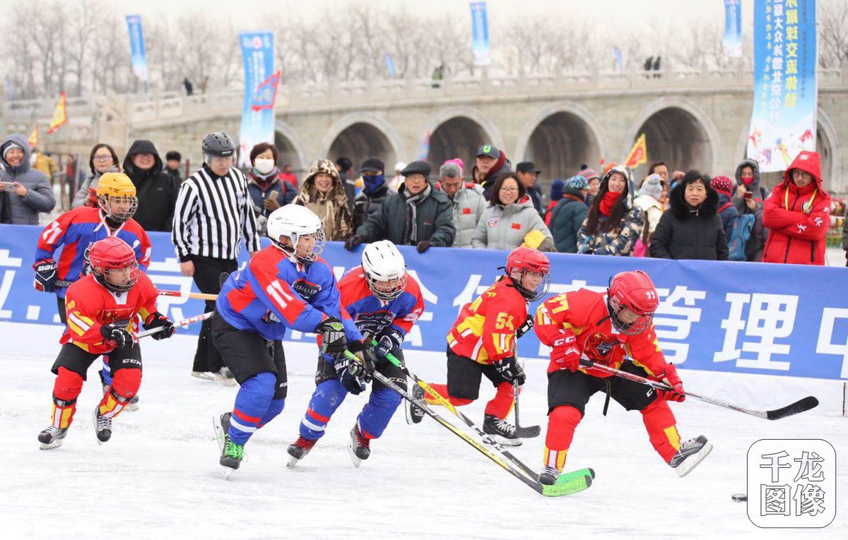 1月21日,第三届大众冰雪北京公开赛启动仪式在北京颐和园昆明湖举办,本届赛事将持续两个月,预计累计吸引上万名健身爱好者参与。图为启动仪式上的冰球表演赛。千龙网记者 戚连民摄