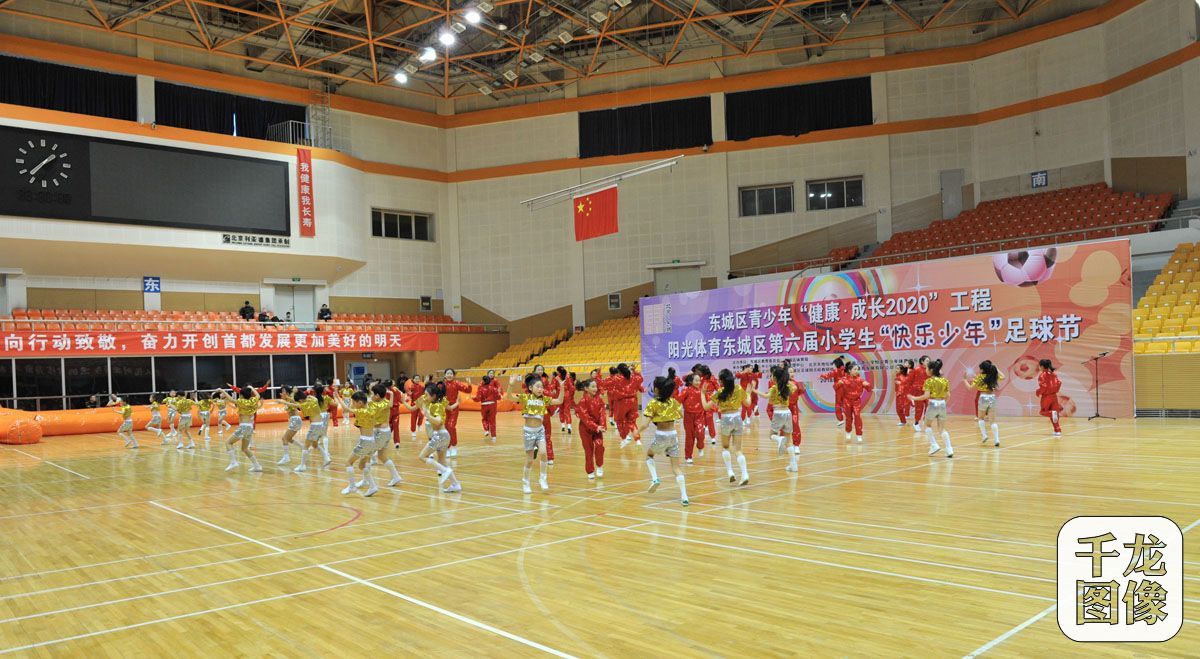 1月23日,东城区第六届“快乐少年”足球节决赛在地坛体育馆举行,此次比赛共计4天,来自东城区的9个幼儿园,28所小学的150余支球队近千名孩子参加比赛。图为啦啦队表演。千龙网发 吴晓萌摄