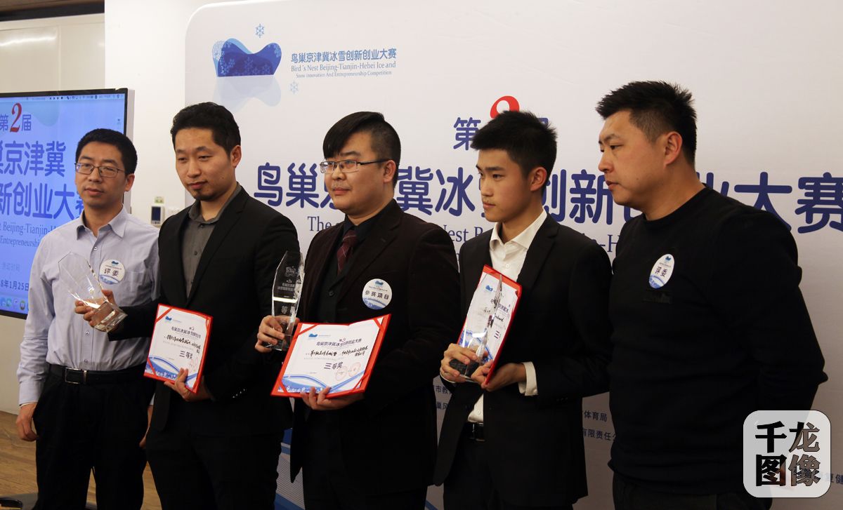 1月25日,第二届鸟巢京津冀冰雪创新创业大赛在鸟巢文化中心举办。18个前沿体育项目在鸟巢文化中心展开激烈角逐,最终,路德国际综合格斗大赛项目一举夺得一等奖,强棒棒球产业和WEsport体育留学项目分别斩获二等奖,鸟巢卡丁车大型AR场景游戏、原子版ionboard、体育城堡项目获得三等奖。图为评委为三等奖项目颁奖。千龙网发 鸟巢文化中心供图