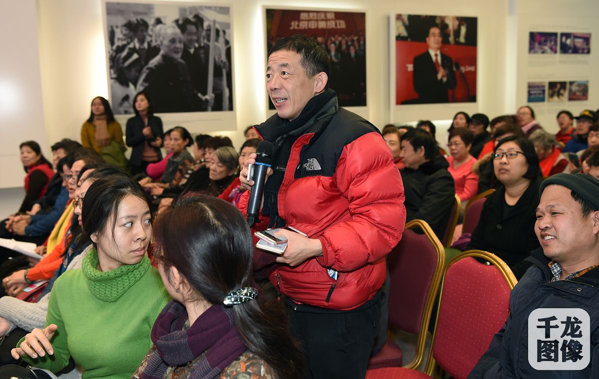 1月26日,朝阳区冬奥大讲堂第三讲在水立方举行,中国女子冰壶世界冠军柳荫向来自周边奥运村、亚运村、大屯街道的社区居民们讲解了冰壶运动的历史及比赛规则和战术。图为观众提问。千龙网发 夏波光摄
