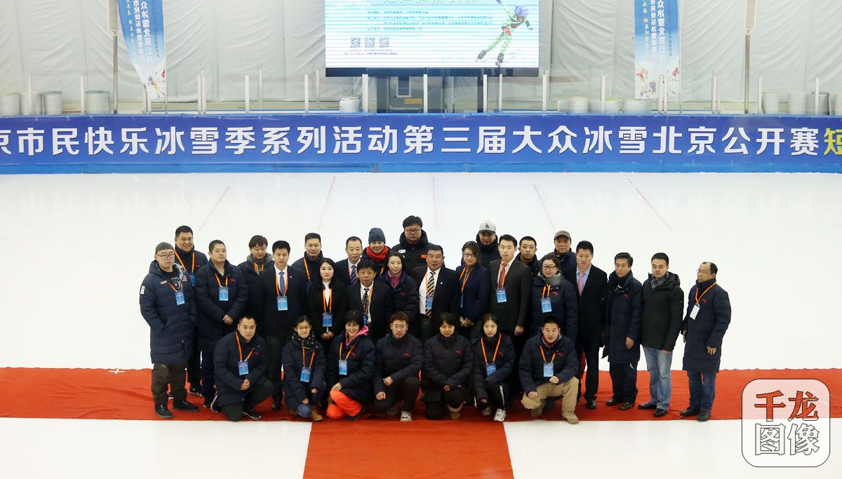 1月28日,第三届大众冰雪北京公开赛短道速滑比赛在京落幕。本届比赛,项目包括500米、1000米、1500米,共有184名选手报名参赛。图为赛后裁判员集体合影。千龙网记者 戚连民摄