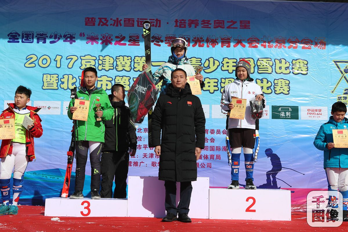 1月29日-31日,“京津冀第一届青少年滑雪比赛暨北京市第二届青少年滑雪比赛”竞技组预决赛及群众组决赛于1月29日-31日在谷渔阳国际滑雪场举行,参赛人数近600人,展现了京津冀三地青少年滑雪运动的发展水平,促进了三地青少年的交流学习。图为北京市体育局青少处处长苏峻为获奖运动员颁奖。千龙网发 顾岩摄