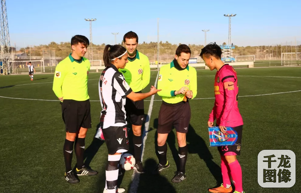 西拔牙当地时间1月29日,北控凤凰女足队员们出发前往瓦伦西亚市,进行本次冬训第一场训练赛,最终北控凤凰1比0战胜莱万特女足。图为队长赛前挑边。千龙网发 俱乐部供图