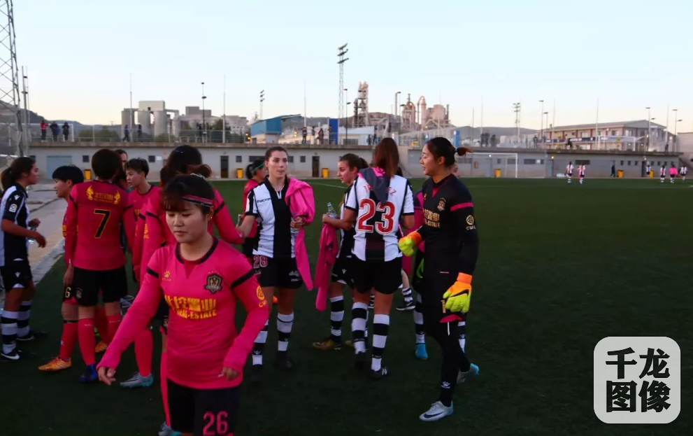 西拔牙当地时间1月29日,北控凤凰女足队员们出发前往瓦伦西亚市,进行本次冬训第一场训练赛,最终北控凤凰1比0战胜莱万特女足。图为女足姑娘们互相握手致意。千龙网发 俱乐部供图