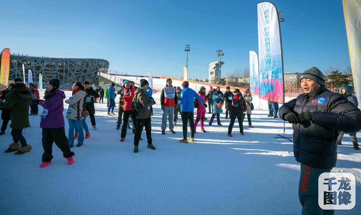 2月3日,由国家体育场主办、中国定向运动协会协办的“迎冬奥·鸟巢冰雪定向跑”欢乐开赛在国家体育场举行,80名定向运动爱好者组成20支参赛队伍,完成冰壶、越野滑雪等结合冬奥项目特色的16个打卡闯关环节。图为本次定向跑热身瞬间。千龙网发 主办方供图