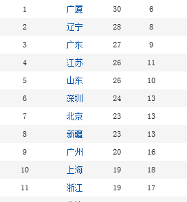 比较极端的情况是最后三队战绩相同,那就需要比较三队之间小循环的总成绩,北京对另外两队2胜2负,新疆对另外两队3胜1负,深圳对另外两队1胜3负,所以排名从高到低将是:新疆、北京、深圳。如果上海队再“抢十”成功,将出现一个很有意思的情况:北上广深四城的球队打季后赛7-10名的比赛。